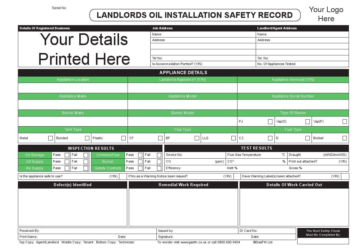 To be completed at the request of a landlord or tenant where there is a need to verify and record an installation's safe operation and compliance with regulations. Each form benefits from having a unique serial number, enabling you to track your work.